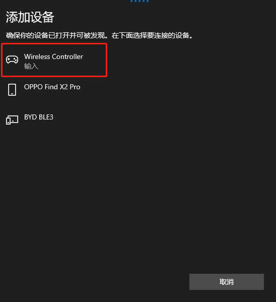 在打开的蓝牙添加设备窗口中,点击第一项也就是“蓝牙”那个地方,然后进入到添加设备的窗口,当你的手柄进入匹配模式的情况下,这里面会显示一个名为“Wirless Controller”的设备,然后单机该设备即可,然后等待显示“你的设备已准备就绪”字样之后就意味着你的手柄和电脑已经完成了连接。