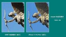 参考iPhone 11 Pro Max的成片,两部手机在白平衡的理解上比较接近。对比放大之后的细节,nova6 5G的细节会更丰富一些,4000万像素的超清模式最大的优势就是在解析力上。