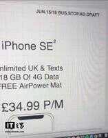 北京时间今日,爆料人Ben Geskin在推特上曝光了关于iPhone SE 2的最新消息。他援引了德高集团(JCDecaux)的广告和草图,称这款手机将在今年6月15日至18日在英国上市。在草图中,我们还可以清晰地看见,这款标称iPhone SE 2的手机采用了“刘海屏”的设计。