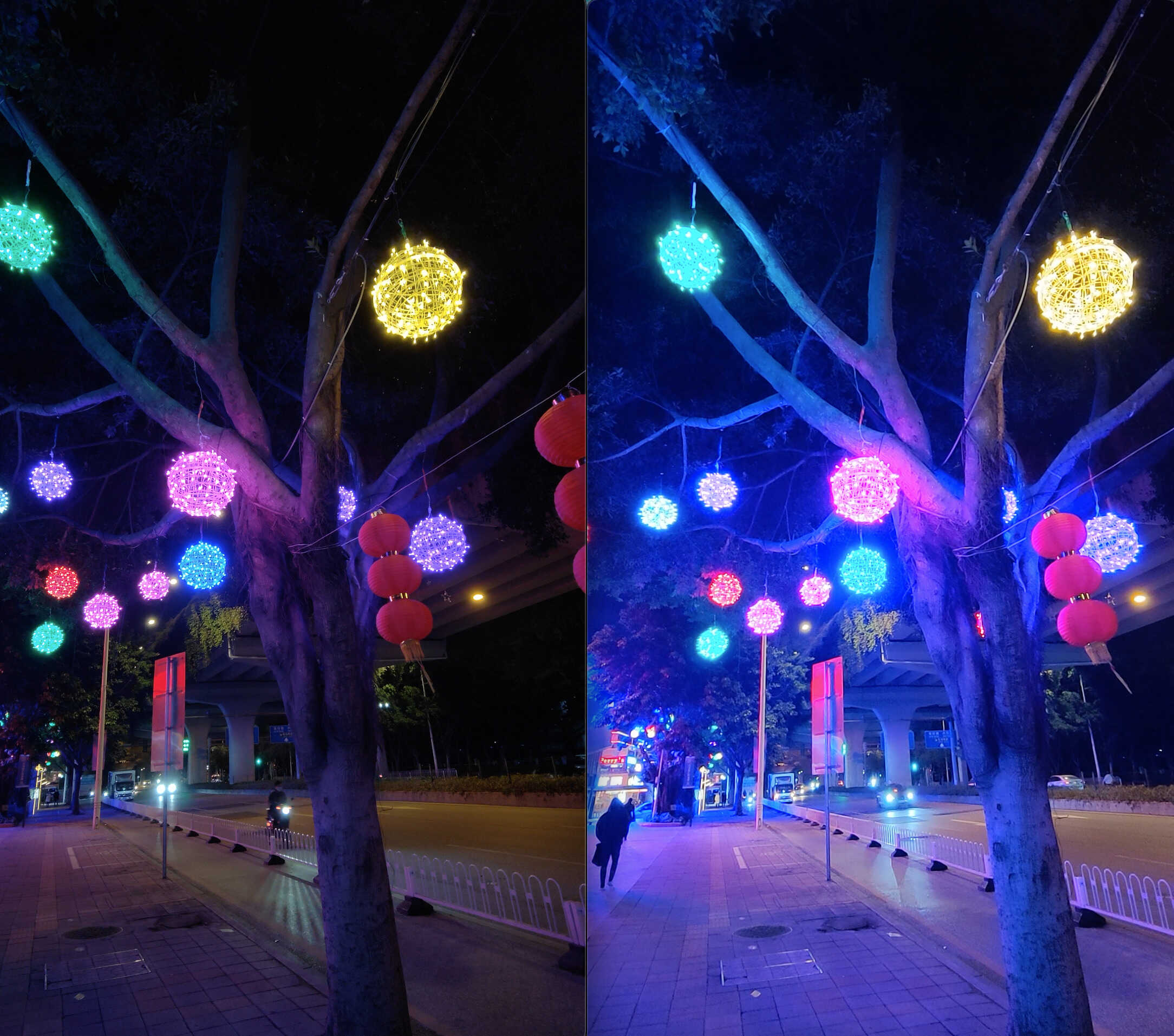 左为OPPO Find X5 Pro 4K夜景视频截图,右为OPPO Find X3