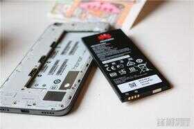 机身后盖可拆卸,打开后盖里面是一块2200mAh的电池,电池也可更换。电池左侧是两个SIM卡卡槽和一个SD卡卡槽。荣耀4A有三个版本,移动版,电信版和全网通版本。双卡双待,SIM卡槽支持盲插,这是目前一些旗舰机都不具备这个功能。