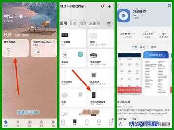 ①通过华为“智慧生活”APP,华为手机自带 ②“万能遥控器”APP,万能遥控器是小米开发的,下载万能遥控器应用后也可以在“米家”APP设备板块打开“手机红外遥控器”