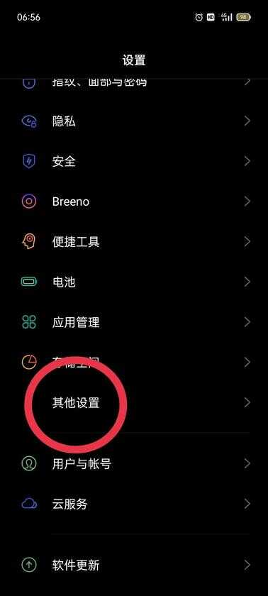 第四步:完成前面的操作步骤后,可以返回到设置选项的最初页面,此时可以找到其他设置选项点击进入!