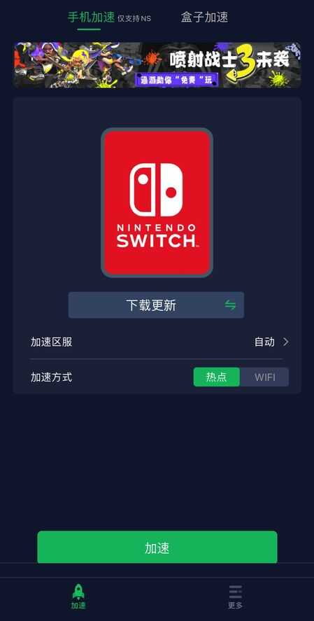 手机应用商店直接搜索下载“迅游主机加速APP”,然后搜索“Switch下载更新”进行加速,开启加速之后能够有效优化NS网络环境,有效解决NAT限制问题,并且极大程度地提升下载速度。迅游主机加速APP热点加速更加方便,不受时间地点的限制。
