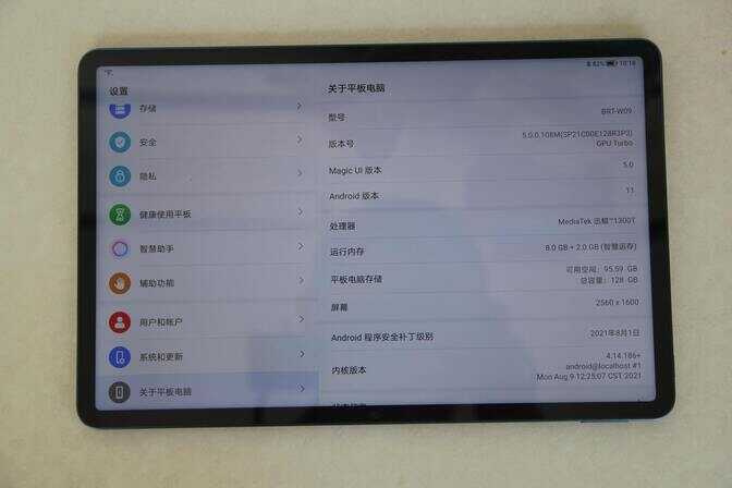 荣耀V7 Pro搭载的是一块11英寸的LCD屏幕,分辨率为2560x1600,支持DCI-P3广色域,至于当下已经成为标配的120Hz,自然也是支持的,而且还通过了德国莱茵护眼认证。