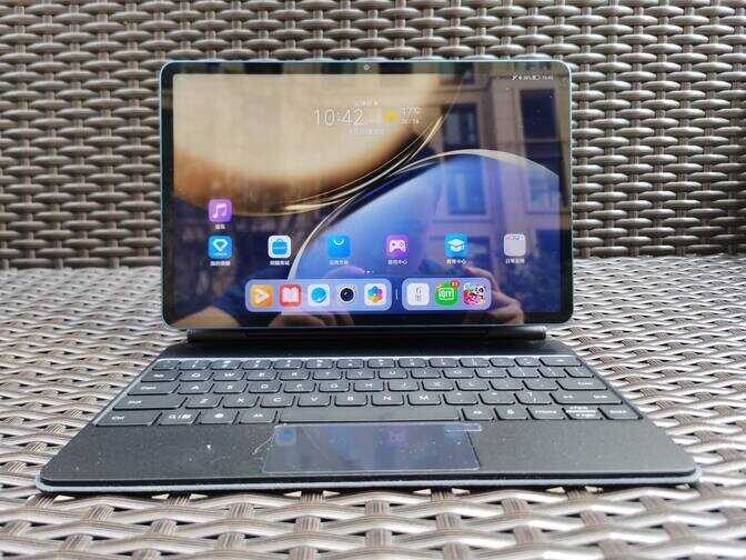 如果带上荣耀Magic悬浮键盘,体重就翻倍了,装在包里稍稍有些沉,不过比笔记本电脑要轻便多了。而且,荣耀V7 Pro的规格设计得也非常合理,比A4纸稍小一些,刚刚好能装进大一些的斜挎包里,携带起来十分方便。