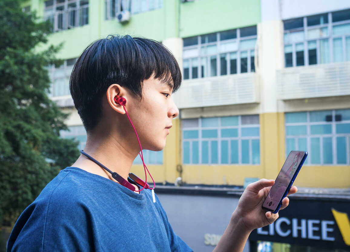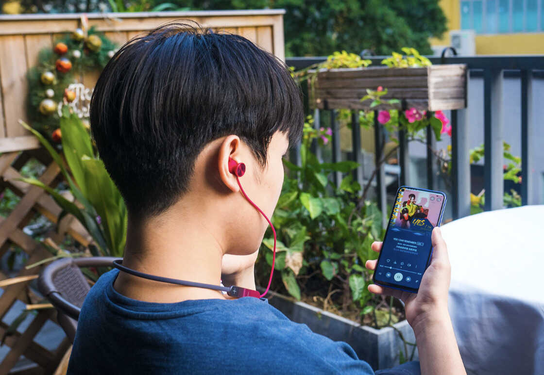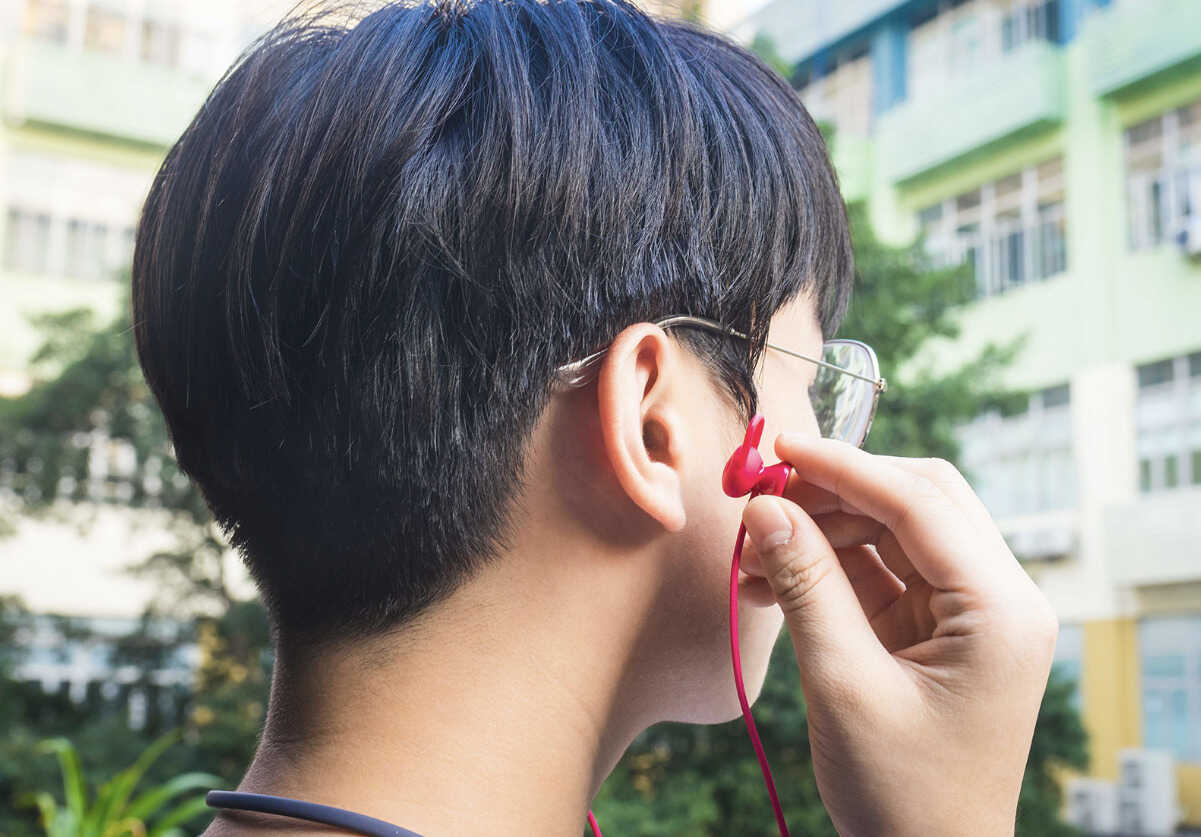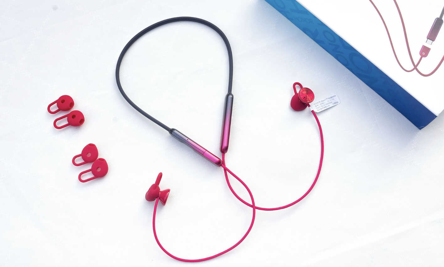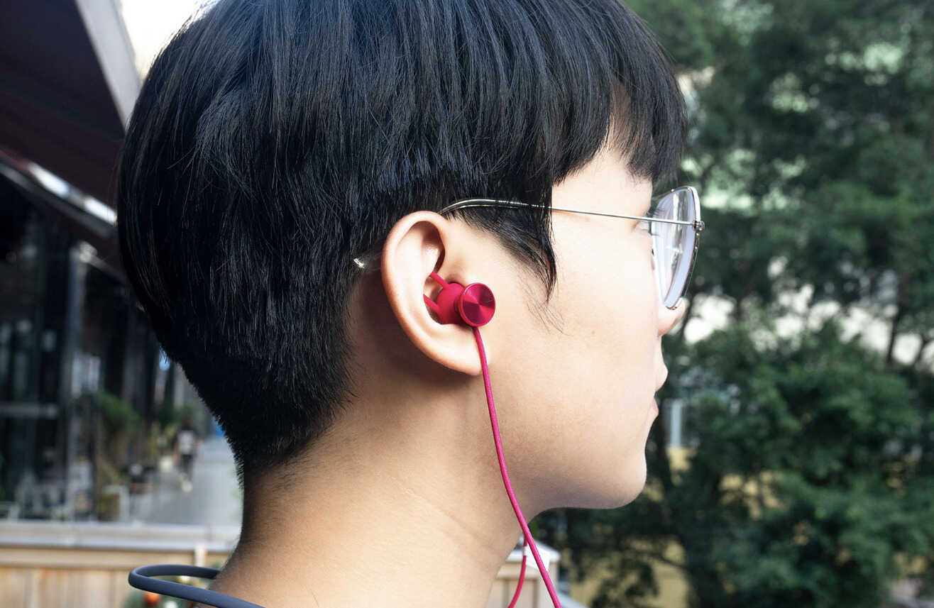 整条耳机的设计相当巧妙,从耳塞、耳挂、到颈挂采用了 3 种不同的材质和由浅到深的渐变色设计,这种质感让年轻人在匹配 AJ 等运动潮流风格时能很好的搭配。