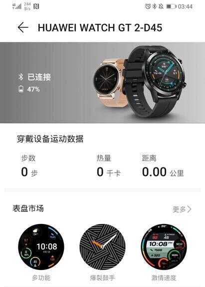 扬声器、麦克风以及更大容量闪存芯片,这难免会增加整体的耗电量。但这并不会影响华为 Watch GT 2 的续航时间,官方号称采用了华为自研的低功耗麒麟 A1 蓝牙芯片,配合智能节电算法2.0模式,可智能识别使用场景合理分配能耗。实际使用一周的时间,常开心率检测、压力检测以及睡眠检测,剩余电量为 47% ,勉强能够达到官方标称的数据。开启息屏时钟功能的话,耗电量可能更多。