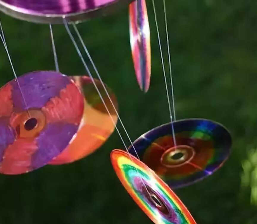 除了工业上的,生活中个人也可以将旧光盘再利用。很多人小时候在手工课都选用光盘作为过材料,最常见的就是把光盘的碎片挂起来做为风铃,不仅风吹的时候发出响声,还可以反射光线显现出不同的颜色。只不过是旧光盘在生活中重复再利用的冰山一角。