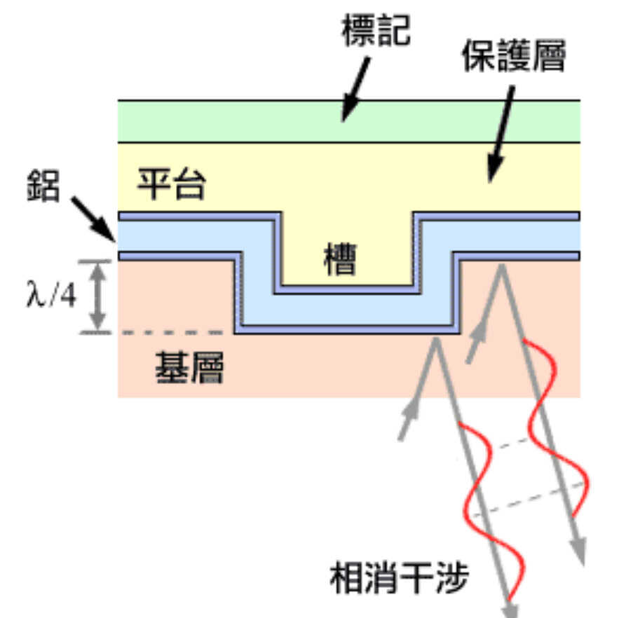 它们就像是汉堡包的两片面包,记录层就是汉堡包的肉,夹在基板的中间。记录层是将一些特殊的化学物质涂在了基板上,这些物质可以被激光烧出一个又一个的痕迹,每一个痕迹代表的是不同的信息。