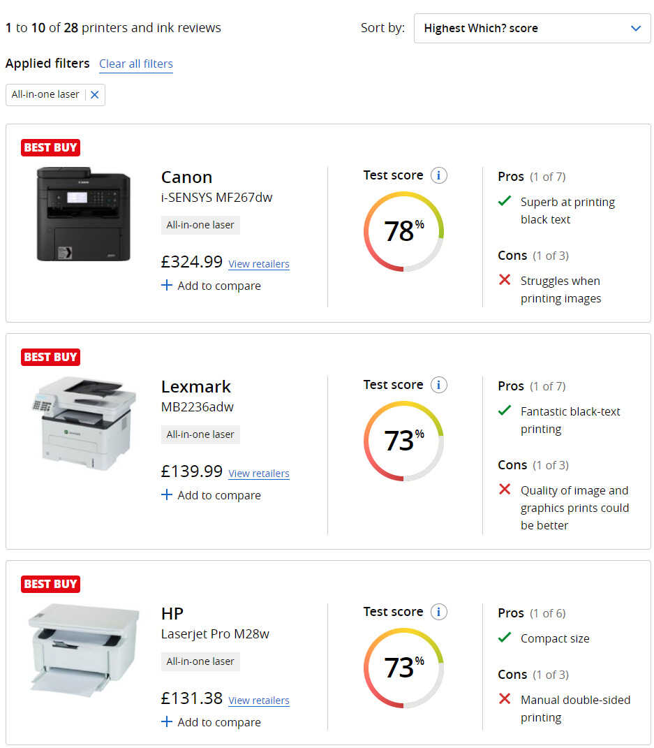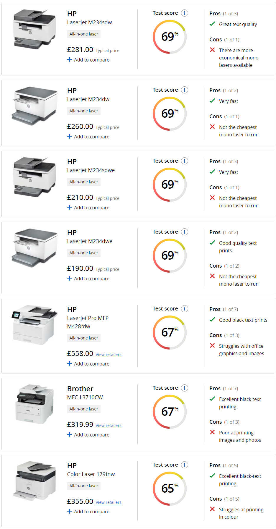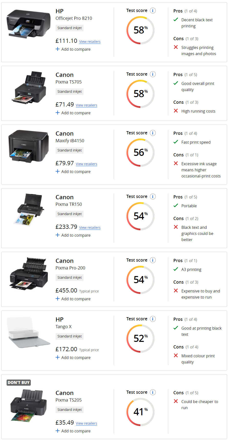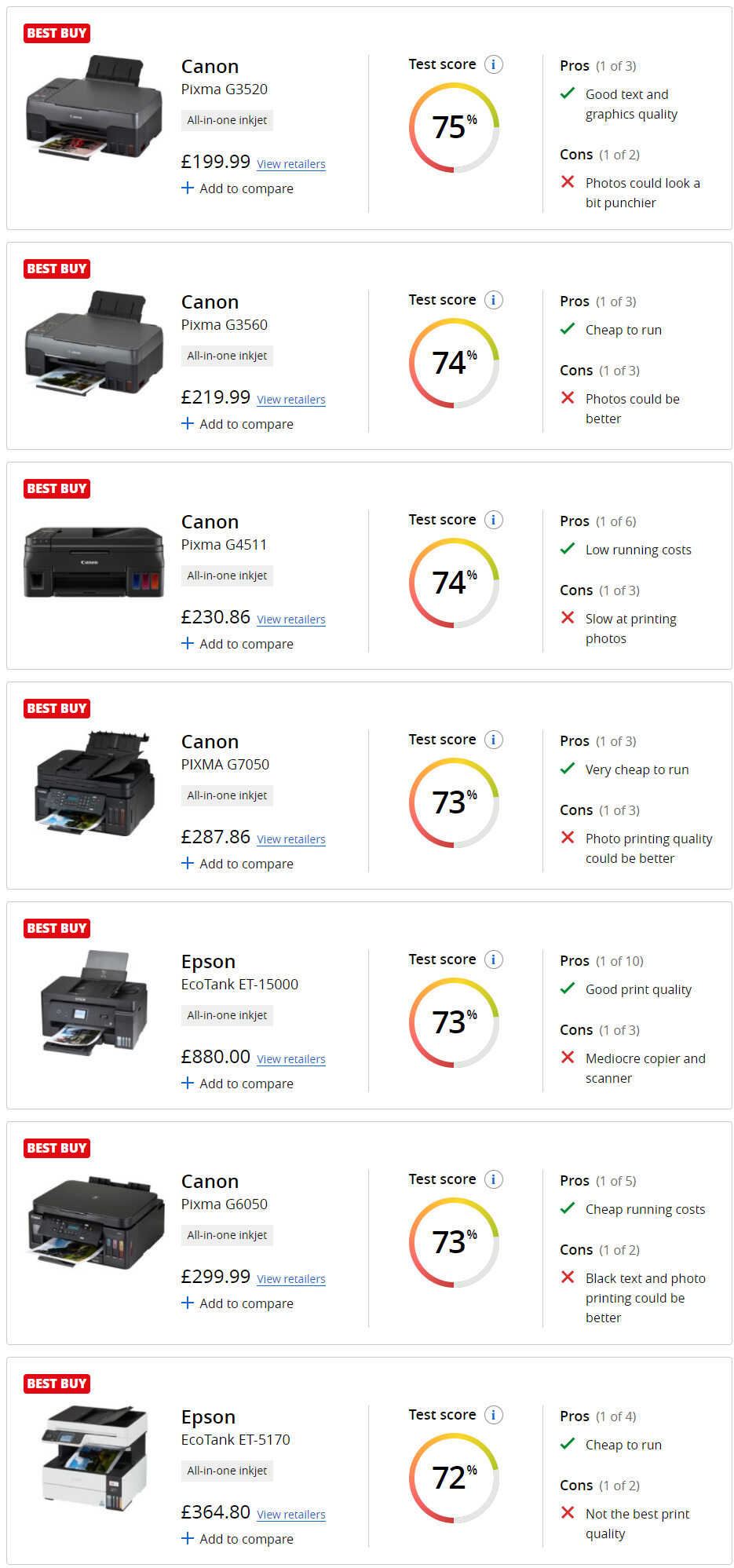 你已经知道选择哪个品牌了吗?你还可以参考英国消费者组织通过独立、专业的全面测试,从189款测试过的打印机中精选出的如下最佳60款,其中绝大多数获评“最佳选择”( Best Buy)。英国消费者组织之所以在实验室进行非常严苛的测试,是因为想帮助消费者选择合适的打印机。