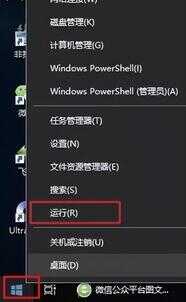 1、鼠标右键点击【开始】菜单按钮选择【运行】。