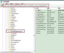 3、展开注册表路径至:HKEY_LOCAL_MACHINE\SYSTEM\CurrentControlSet\Services\SecurityHealthService