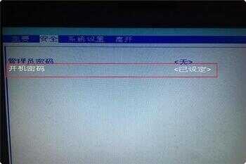 4、 找到开机密码选项,选中并回车方向键选中后按回车键