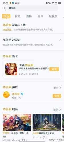 在王者营地中搜索体验服,会出现一个体验服的申请与下载,点击下面的“点击这里”,进入申请页面,基本与电脑上的申请页面一致。