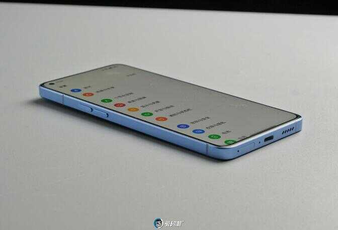首先是正面屏幕的超窄边框,这两年随着全面屏设计的完全普及,已经鲜有厂商在屏占比的提升上做更多尝试,而在 Reno7 Pro 上,屏幕四边宽度都做到了极窄,其中左右黑边约 1.55mm,额头 1.89mm,下巴 2.8mm,其超高的屏占比配合直屏的设计握在手里更有一种手握一块屏幕的感觉。