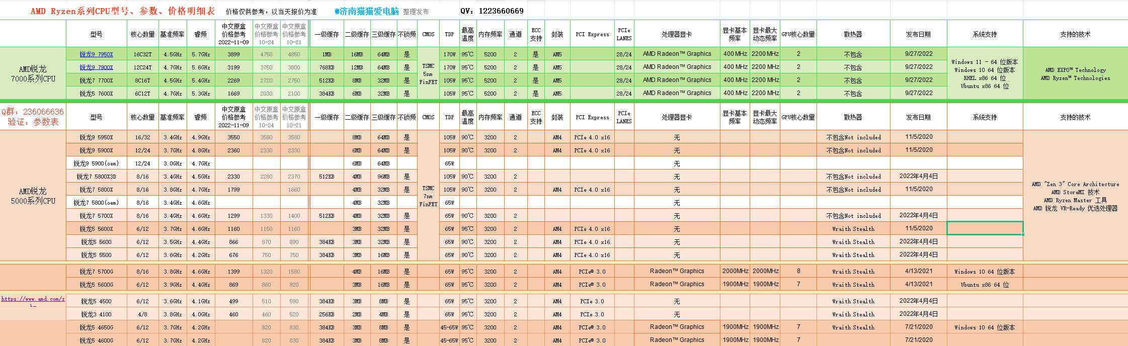 更多硬件价格参考、性能天梯图等,可加Q群236066636,验证:参数表。