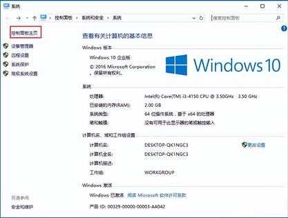 3、切换至了“系统”界面,找到“控制面板主页”并点击,如图所示: