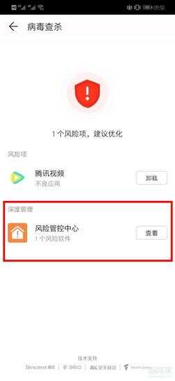 打开手机管家,点击病毒查杀,就可以看到风险管控中心了。