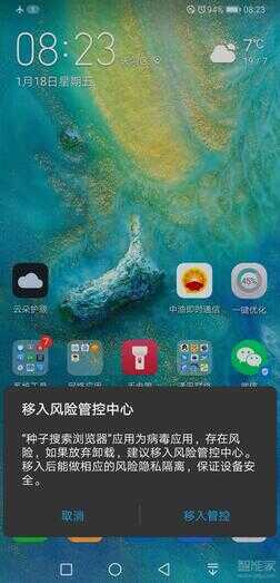 华为手机的风险管理是AI芯片在进行智能防护,识别提醒可能存在威胁的未知应用,提示用户该应用已移入风险管控中心。那些已经管控的应用将禁止打开敏感权限,让手机更安全。