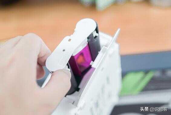 右侧为色带安装位,因为是热升华技术,虽然不需要墨盒,但是色带还是必须的。单盒色带理论上可以打印54张照片,也是后期耗材计算成本的一部分。