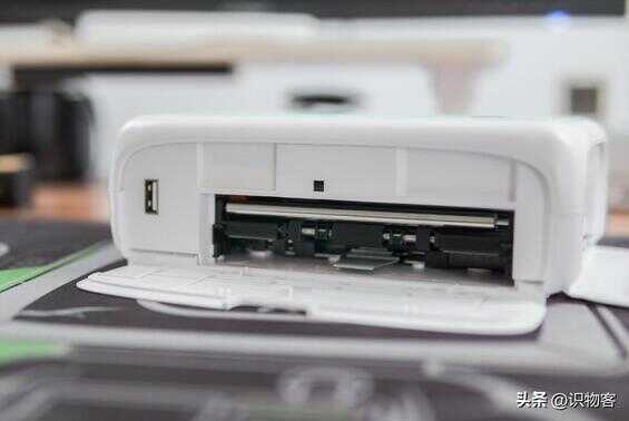 正面位相纸出口,对应的纸夹也是在这里安装。相纸口旁边还设计了一个USB接口,这就方便接上U盘或者转接器,直接打印本地照片。