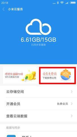 1.打开小米云服务界面,在中间找到下图方框里的会员免费领按钮