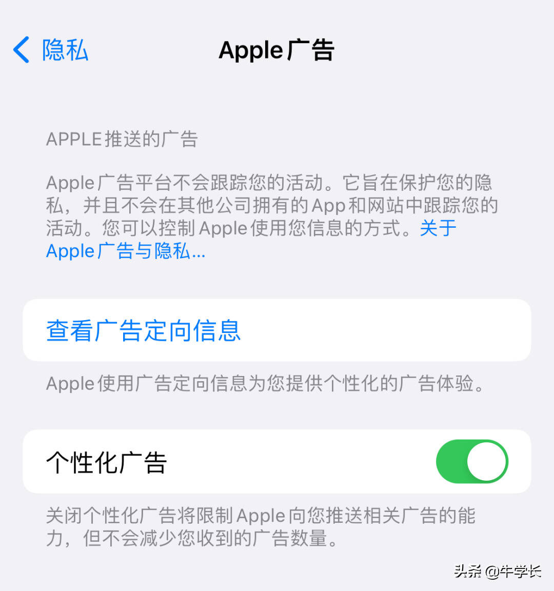 Apple广告其实和跟踪设置有点类似,都是减少向你推送定向广告的能力。