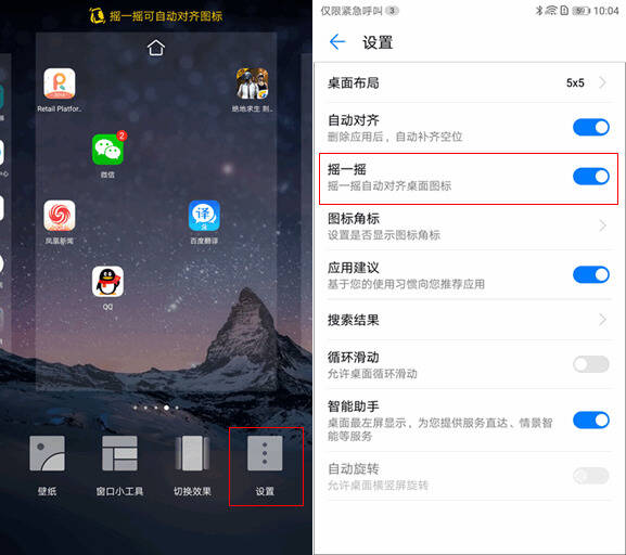 平时比较懒的话可以设置一下这个小功能,以后要是桌面乱了?不要紧,只要摇一摇,就可以还你一个整洁又干净的桌面哦!