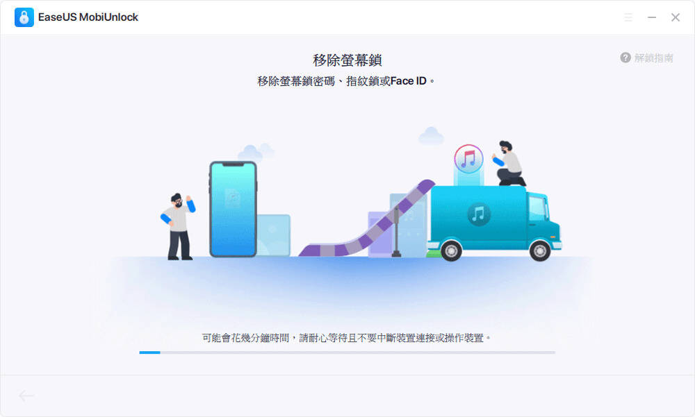 步骤5. 等待工具移除您的iPhone、iPad和iPod密码。完成后,您可以再次使用您的iPhone、iPad和iPod。