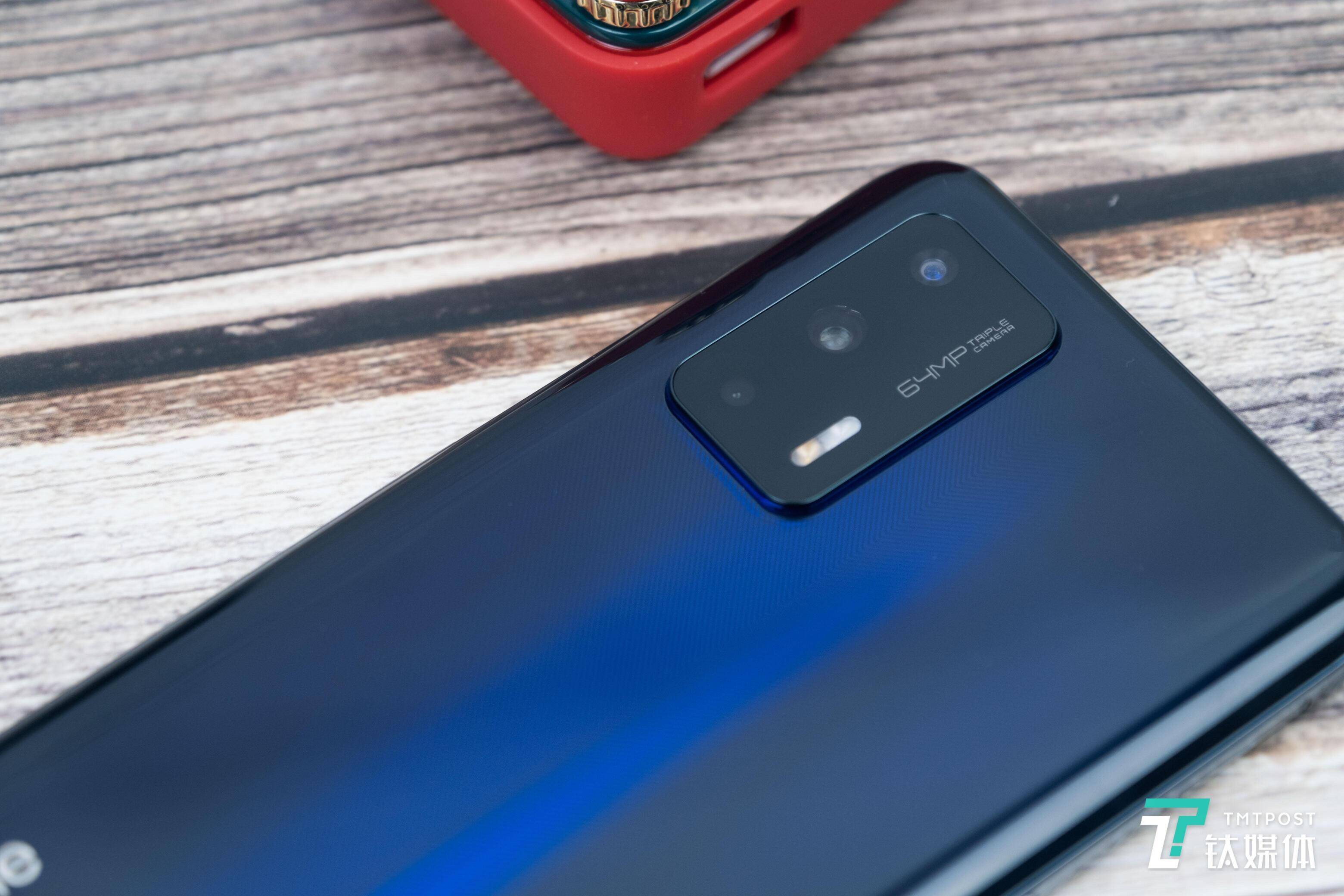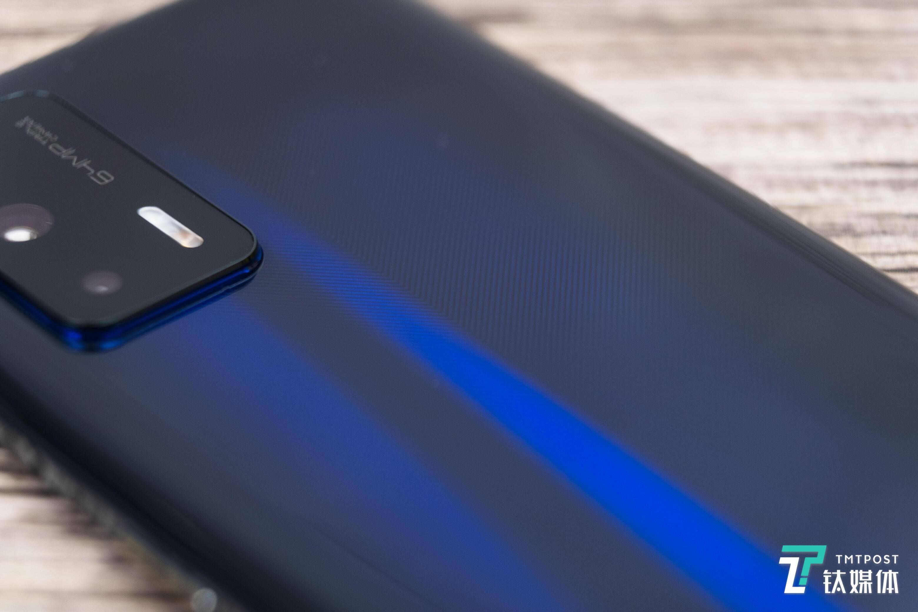 笔者拿到的是“深海飞艇”配色——这一配色听上去显得比较“中二”,实际上其观感就是深蓝色,只不过在玻璃背板之下,有一层特殊的膜片,会隐隐地透射出幽蓝纹理,看上去有一种深不可测的感觉。