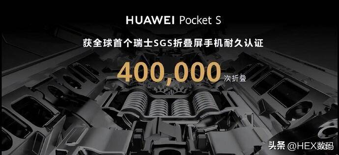 另外值得注意的一点是:华为Pocket S获得全球首个瑞士SGS折叠屏手机耐久认证,历经40万次折叠考验。