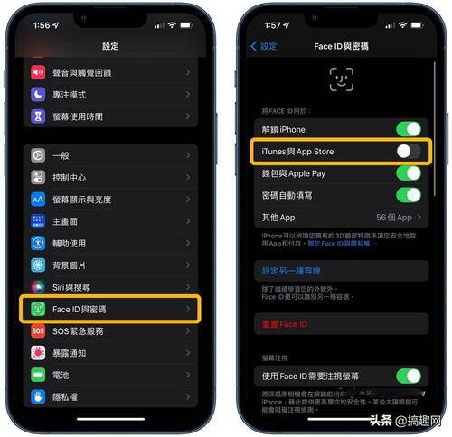 关闭 iTunes与 App Store 的 Face ID / Touch ID