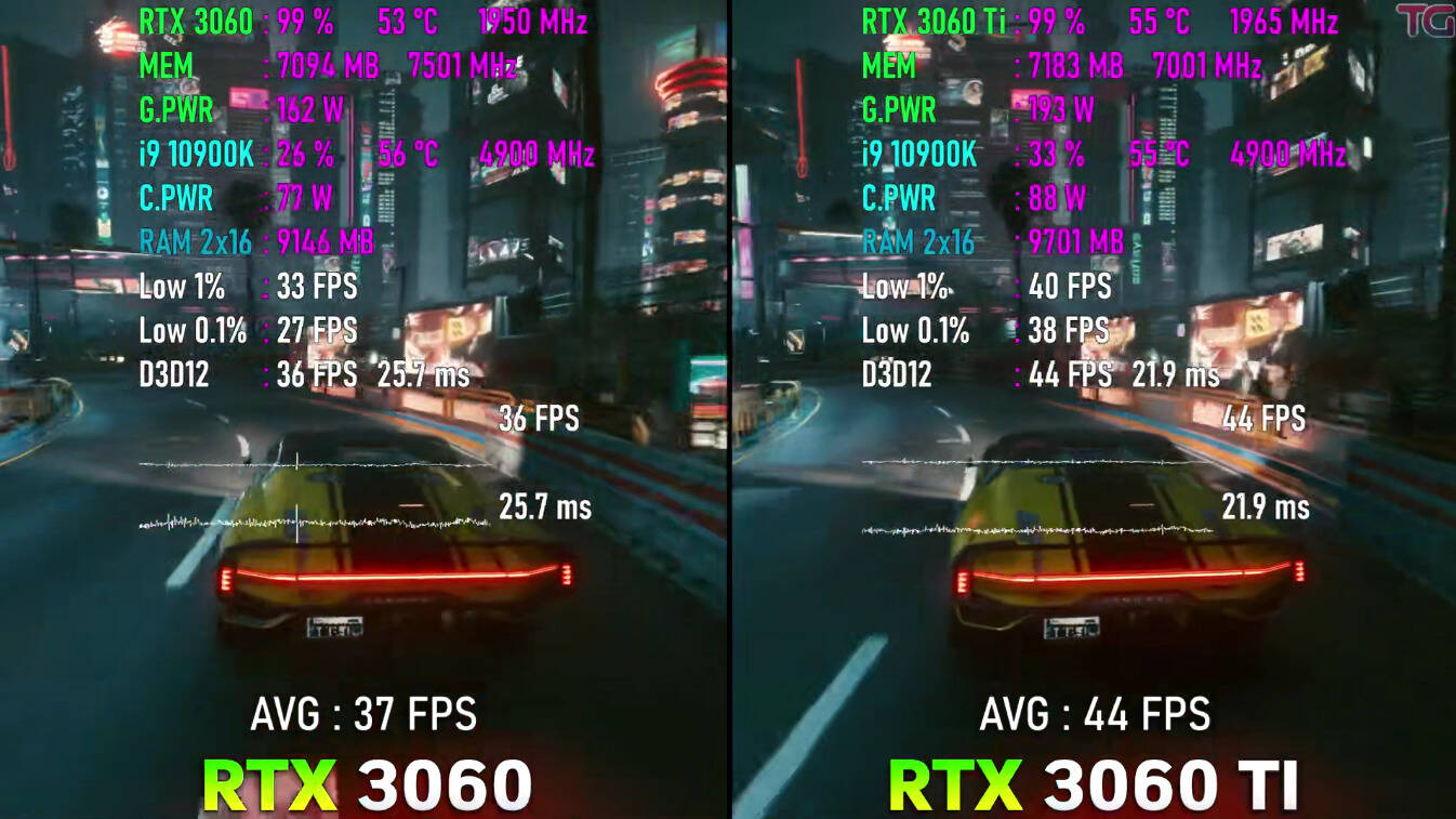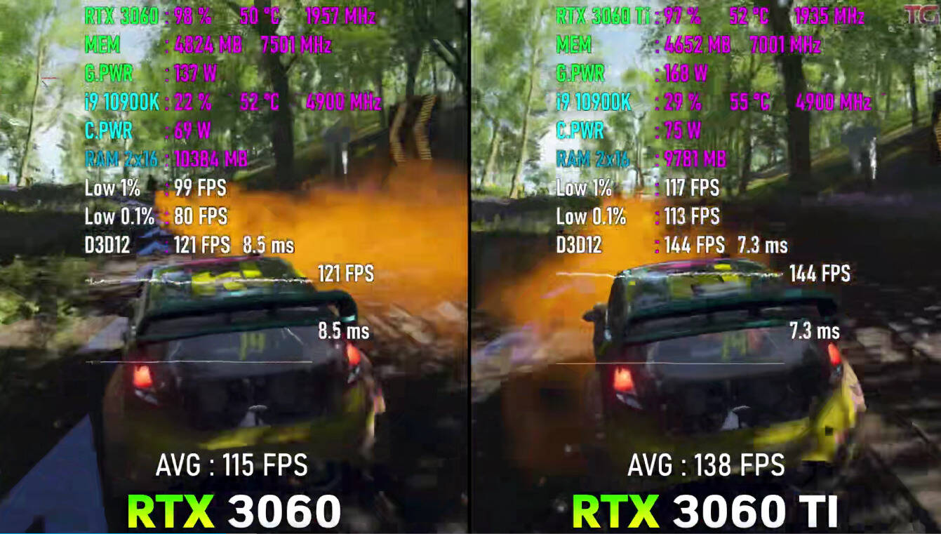 那么差价500元的RTX3060和RTX3060TI的性能差距究竟有多大?我们来做一个详细的罗列: