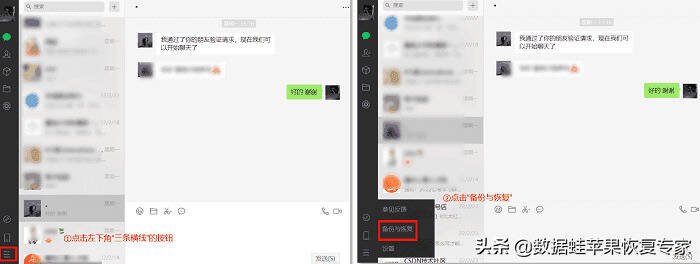 使用电脑端微信来恢复微信的聊天记录,但是当我们去直接使用这个操作时,却是无法恢复微信聊天记录的。因为,微信备份恢复聊天记录是有一个前提:在微信聊天记录丢失之前就已经做过备份才可以正常的恢复微信聊天记录。那么通过微信备份苹果手机怎么恢复微信聊天记录呢?请看以下两个步骤: