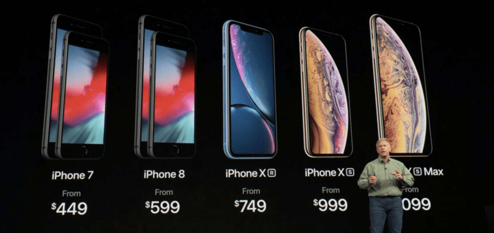 iPhone XR 的起售价为 749 美元,iPhone XS 和 iPhone XS Max 的起售价格为 999 美元和 1099 美元。而在中国市场,iPhone XR 三个版本的价格为 6499 元、6999 元和 7899 元人民币,iPhone XS 的价格是 8699 元、10099 元和 11899 元人民币,Max 版本价格为 9599 元、10999 元和 12799 元人民币。
