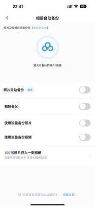 对于大多数人来说,照片和备份应该就是空间告急的罪魁祸首了。接下来我们就分别处理一下这两个庞然大物。对于照片来说,替代iCloud的可选项并不少,目前国内主流网盘基本都提供了照片备份功能,如果你并不需要iCloud所提供的多设备快速同步等功能,网盘的照片备份就足够使用了。值得注意的是,如果你此前选择了“优化iPhone存储空间”,那么在关闭iCloud照片前需要提前将图片从iCloud中下载下来,避免照片丢失。