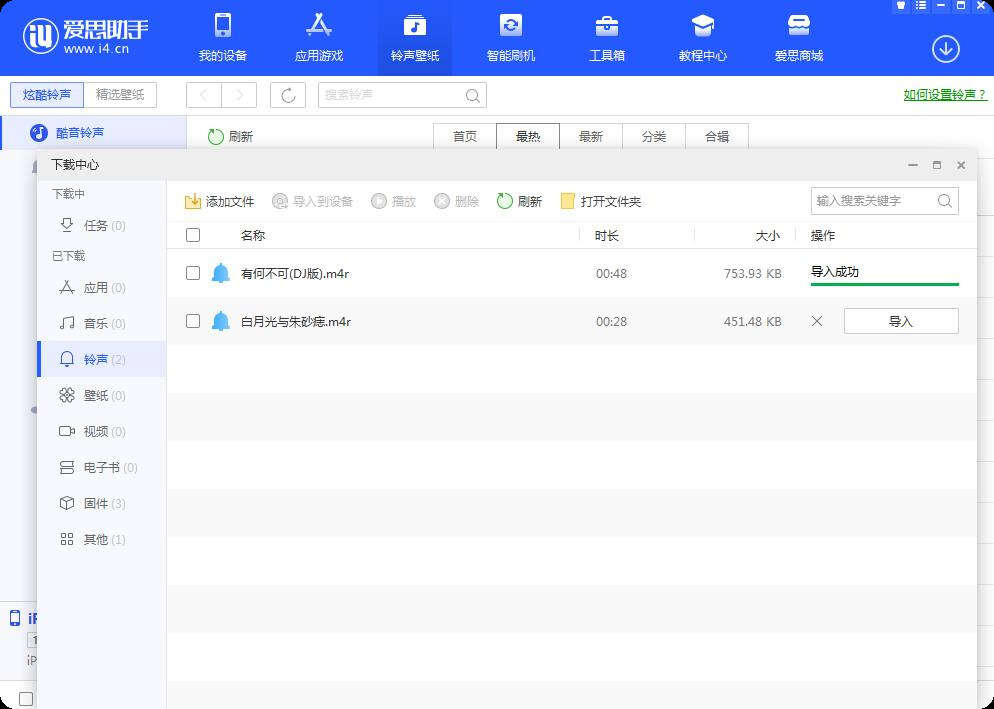 爱思助手大家一定也不陌生,手机数据备份,和更新刷机系统偶尔会用到。如果你家有电脑的话可以安装一个,下载铃声和壁纸都是可以一键导入到手机系统中,整个过程比较简单操作。