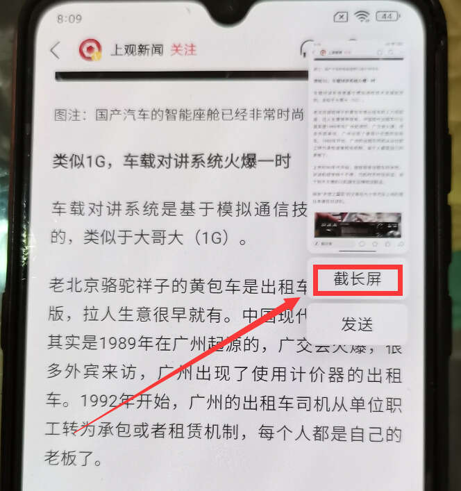 这种截屏方式是以上6种截屏方式的扩展截屏。当我们看到一篇长网页时,因为太长,需要用到长截屏,这时,我们先通过上面6种方法截屏一下,这时,在截屏的界面会有一个“截长屏”的按钮(如下图),点击这个“截长屏”按钮,就会开始滚动截屏。