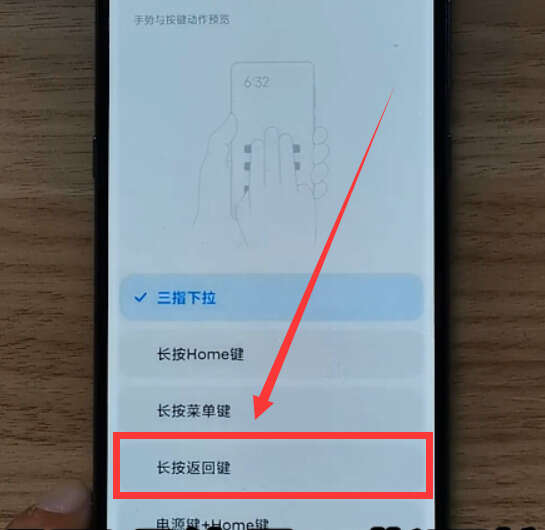 这里,我们选择“长按返回键”,就设置完成了,然后就可以使用“长按返回键”截屏的功能了。