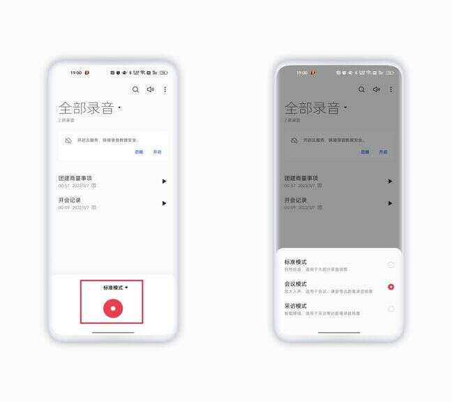 超级录音功能有着三种录音模式,如果你是上班族或者学生,在开会或者上课需要录音记录时,建议使用会议模式。