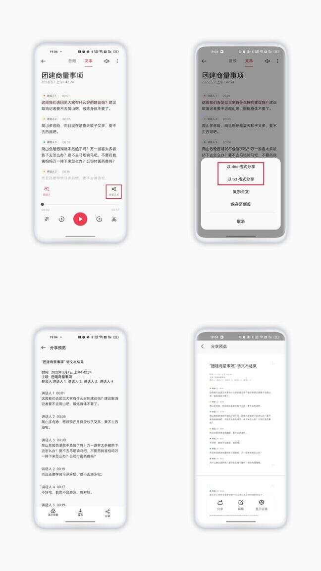 录音转为文本后,还可以继续转换为DOC、TXT格式或者保存复制分享给别人,非常好用!