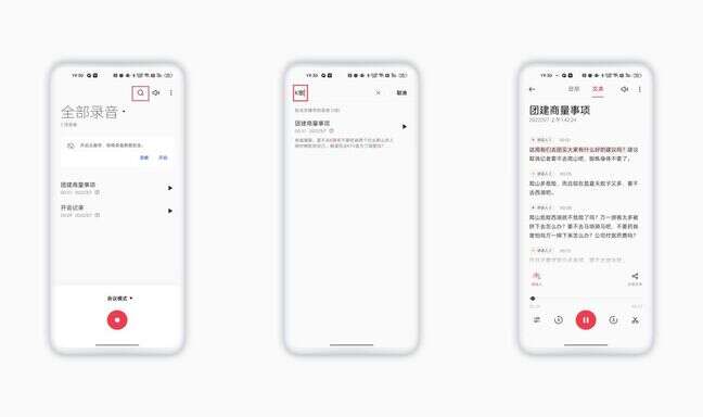 在平时做会议记录的时候使用「超级录音」这一功能会更加方便。因为它可以识别录音内容里不同的人声,并且支持将其分类并转为文本。什么时间,什么人说了什么话,就像很多人的聊天记录一样。