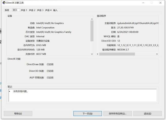 这里小A告诉大家,还有一个方法也可以查看比较详细的硬件配置,那就是使用微软Direct X自带的诊断工具。具体运行方法如下:同时按下Win键和R键,弹出“运行”对话框,然后输入“dxdiag”,点击确定,这时就会出现“Direct X诊断工具”,再经过一小会的检测过后,我们就能看到系统、显示屏、声音、输入端设备详细配置。