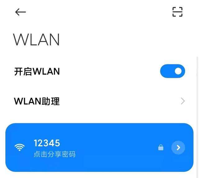 3.通过手机WiFi分享二维码扫描查看。部分手机支持分享WiFi密码,点击分享会生成二维码,你用微信扫描即可看到WiFi的密码。扫描后显示WIFI:T:WPA;P:12345678;S:12345;H:true;P:后面的就是WiFi密码。