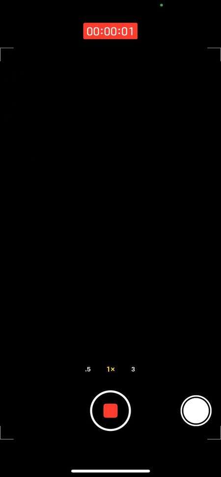 您还可以在录制视频的同时在 iPhone 上静默拍照。为此,请打开相机应用程序并选择视频模式。点击红色的大录制按钮开始捕捉视频。视频运行时,您会看到侧面出现一个白色的快门按钮。只需点击此按钮即可拍摄当前帧的照片。