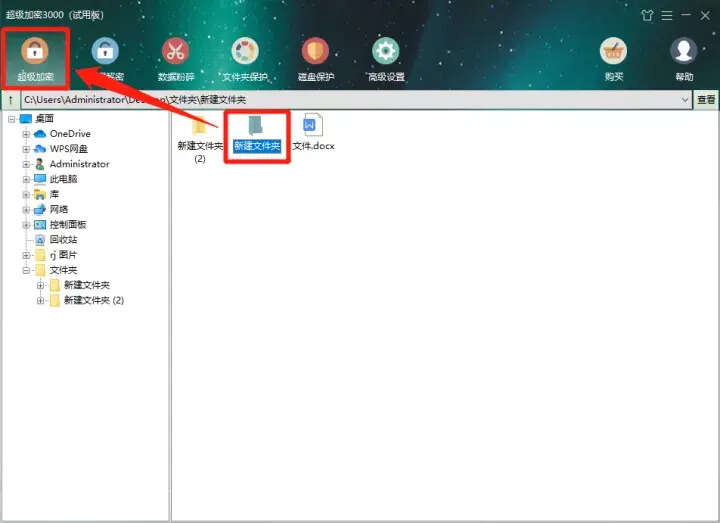 1、打开超级加密3000,在软件中找到需要加密的文件夹,点击“超级加密”按钮。