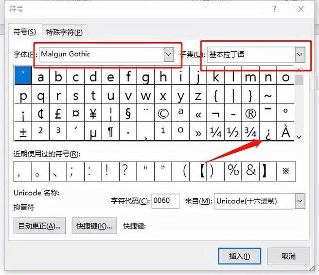 第二种办法就是打开word软件,在工具栏选择插入,然后选择符号,点击其他符号字体选择Malgun Gothic,子集选择基本拉丁语,然后下拉就可以找到了。