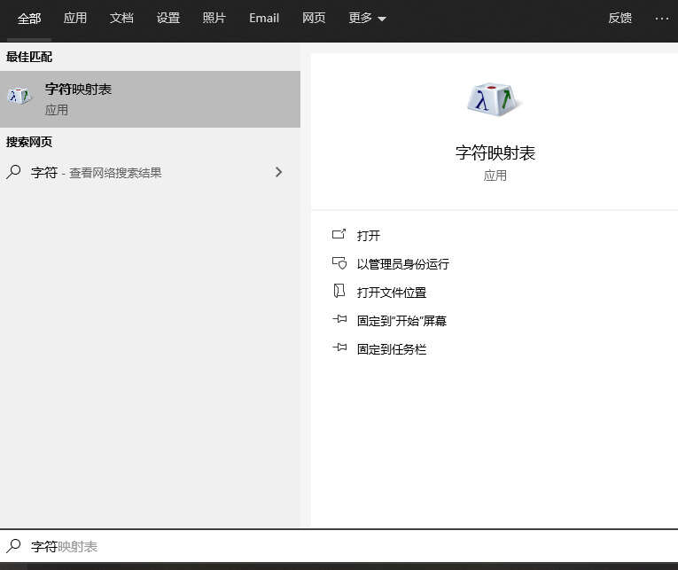 说完手机端,咱们接着说PC端,PC端的话有好几种方法,先说比较常用的两种。咱们先点击任务栏上面的搜索框(快捷键win+s)搜索(字符映射表)回车键打开,然后下拉就可以找到这个符号。