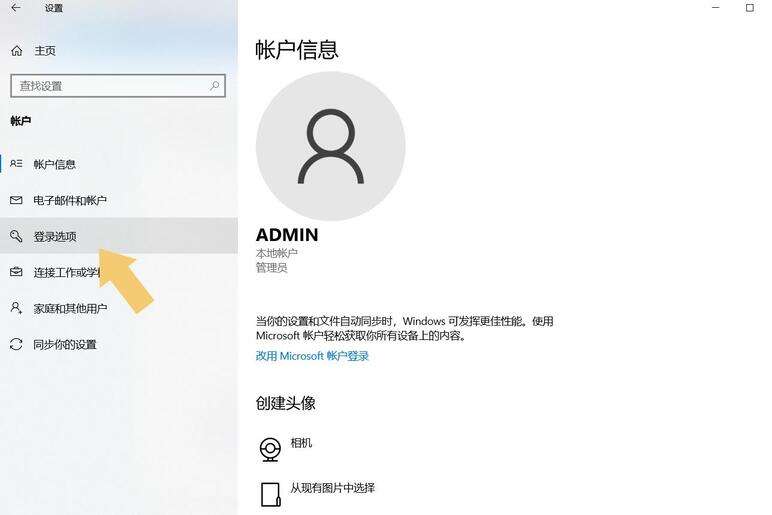 找到“帐户”选项后,点击打开它,在弹出的界面里找到“登录选项”。如下图: